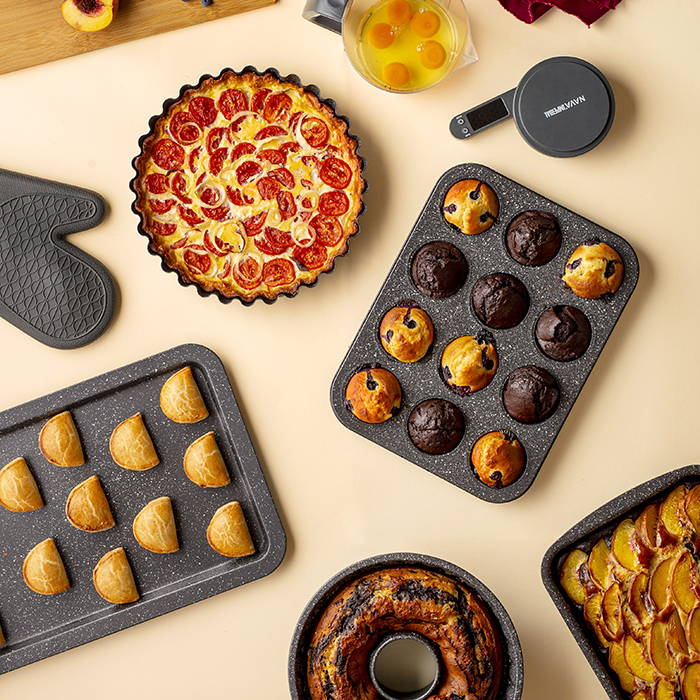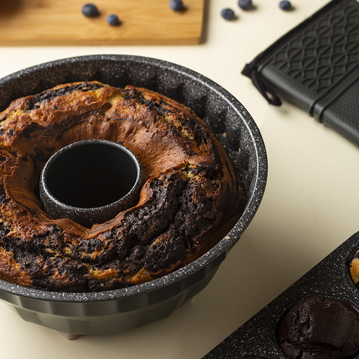 The form is made of carbon steel which ensures uniform heat distribution in the pan for better cooking results. The polygonal inner side walls offer a special shape to the baking. The non-stick stone coating allows the easy removal of the cake, as well as the easy cleaning of the pan after use.