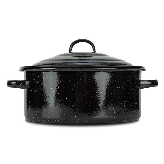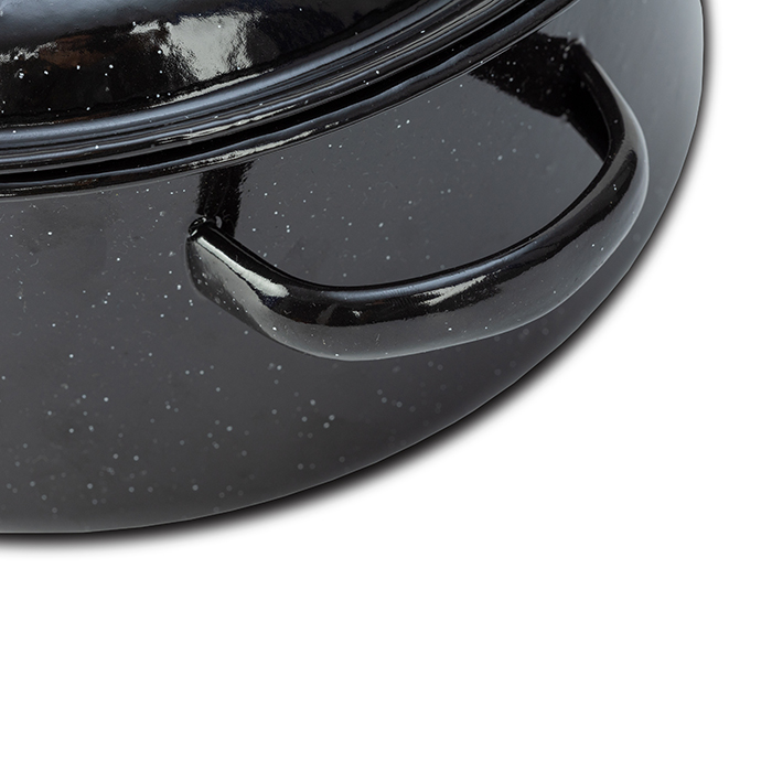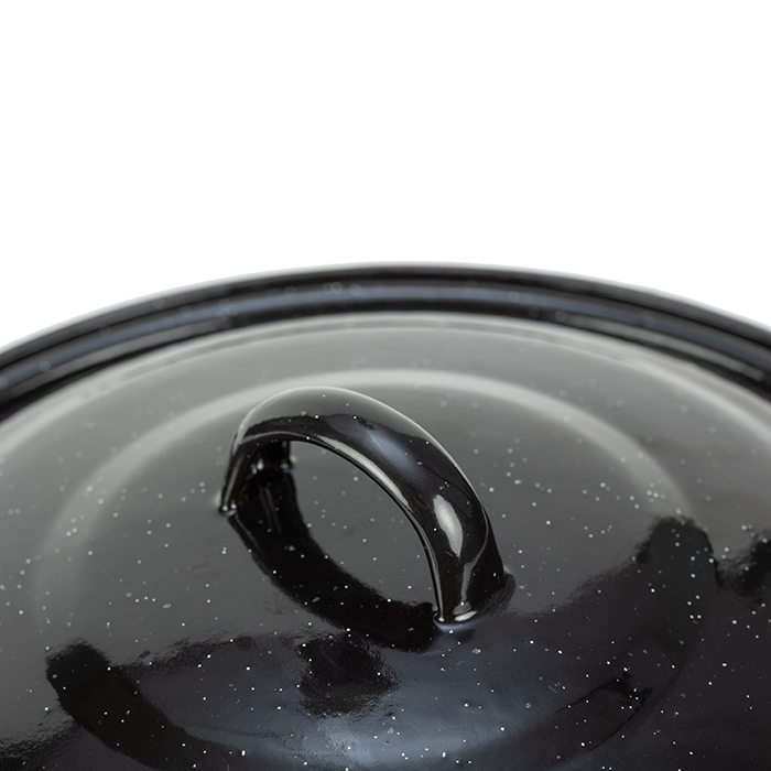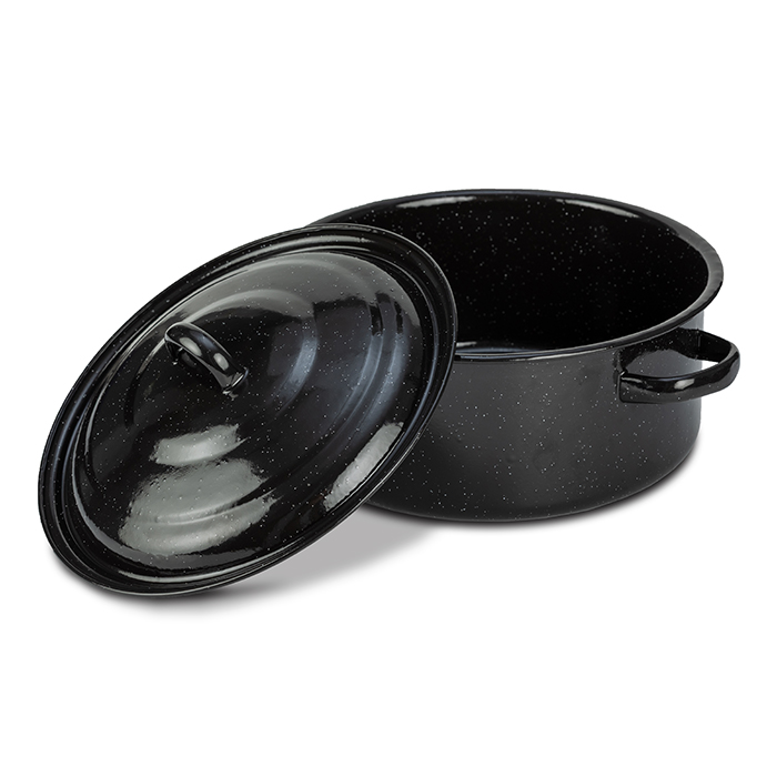 Enamel is a material that heats up quickly and cools down slowly, keeping cooked food warm for a longer period. Ensures even heat distribution during baking. Shows great resistance to scratches and high temperatures, is lightweight, easy to carry and clean.