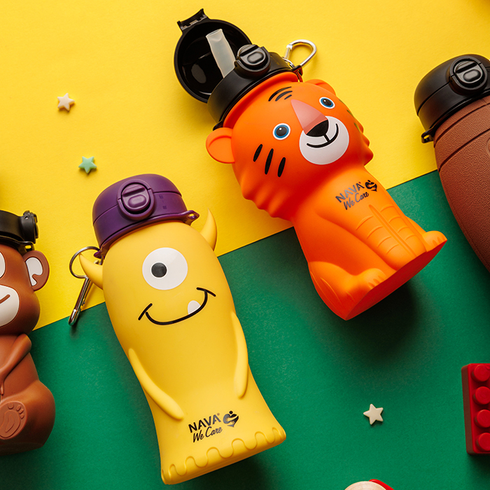 The silicone bottle with straw "We Care" of Nava 500ml, will delight young and old.