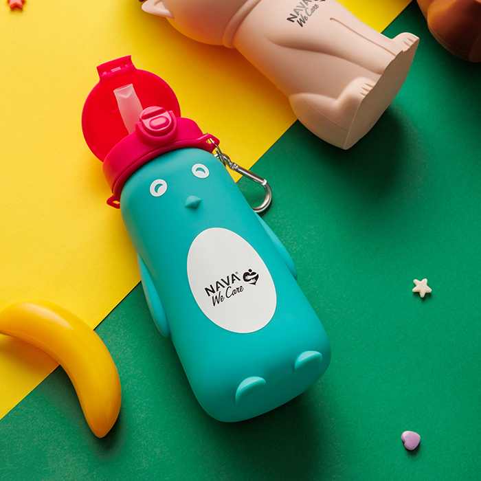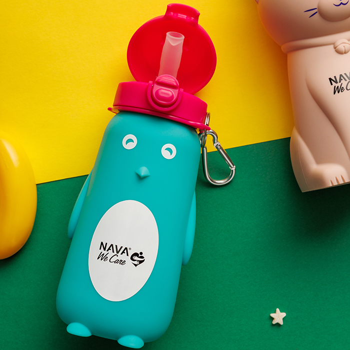 The silicone bottle with straw "We Care" of Nava 500ml, will delight young and old.