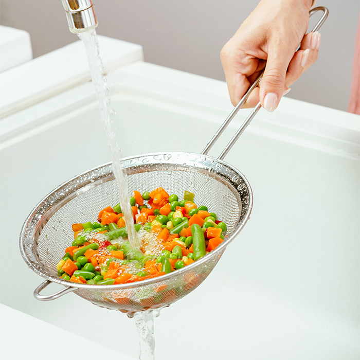 Essential in every kitchen, the stainless steel hand strainer Acer by NAVA covers multiple needs in the meal and pastry preparation. It is perfect for sprinkling the sweets with powdered sugar, straining the tea or broth and sifting the flour. It can also be used for rinsing the legumes or rice, for draining pasta or vegetables or even for steaming.